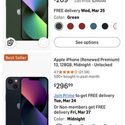 iPhone 13 128GB Factory Unlocked For Any Carrier$225Norfolk, VA