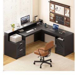 63" Farmhouse L Shaped Desk with Drawers & Storage Shelf, Corner Computer Desk with Power Outlets for Home Office,$150Virginia Beach, VA