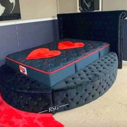 Black Velvet Tufted Design Round Storage Bed Frame ⭐ Queen Size Storage Bed Frame/King Size Storage Bed Frame $1,899Chesapeake, VA