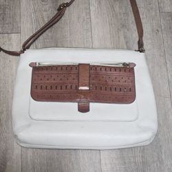***SOLD**FOSSIL Kinley Medium Crossbody Bag White and Brown Leather with Key Charm (AS-IS PLEASE READ)$10Norfolk, VA