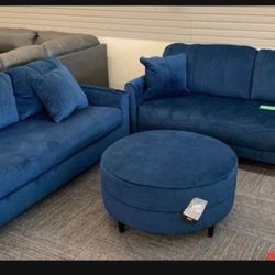 Blue Ink Velvet Comfortable Modern Sofa And Loveseat π Living Room π Fastest Delivery β