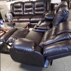 Dark Brown Leather Reclining Sofa Loveseat ~ Living Room Set β