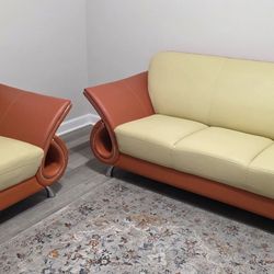 Global Furniture U559 Modern Leather Sofa & Chair Set – Beige/Orange – Excellent$875Portsmouth, VA