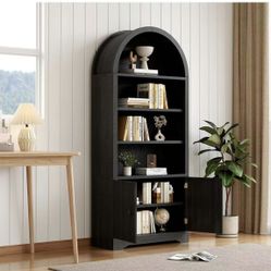 Modern Arched Wooden Bookcase Cabinet with Storage, 6 Tier Freestanding Storage Shelves with Door, Farmhouse Bookcase Kitchen Pantry Cabinet, for Home$150Virginia Beach, VA