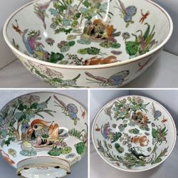 Large 14” Chinese Export Porcelain Famille Rose Punch Bowl Fish Frogs Lilies$320Lovettsville, VA