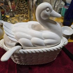 Vintage Large White Ceramic Duck Soup Tureen, Lid, and Ladle$20Raymond, WA