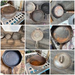 16 piece cast iron skillets, pots, lids, griddle ect. wagner ware sidney o no.8 cast iron pan $125Brady, WA