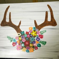 Antler & Flowers Art On Canvas$10Grays Harbor County, WA