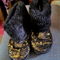 Sparkly Gold/Black faux fur booties $12Brady, WA