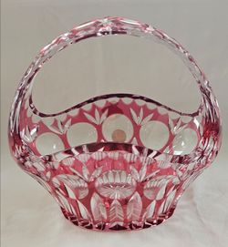 Vintage NACHTMANN Cranberry Red Cut-to-Clear Handcut 24% Lead Crystal Candy Basket with Handle$95Grayland, WA