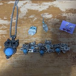 Turquoise Owl Bracket Necklace Locket An Earrings$20Brady, WA