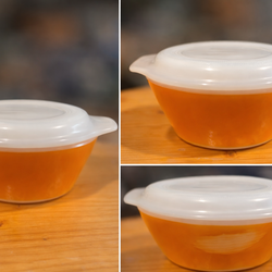 Vintage Federal Amber Glass Bowl with White Milk Glass Lid$10Portland, OR