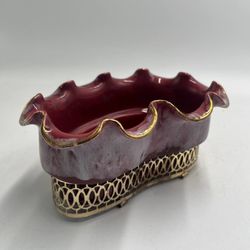 Vintage Art Glass Cranberry Bowl w Gold Rim in Ornate Filigree Basket$40Portland, OR