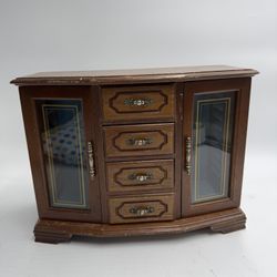 Vintage Wooden Jewelry Box Cabinet Glass Doors Necklace Carousel Drawers Chest$50Portland, OR