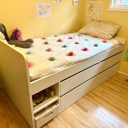 Ikea SLÄKT Bed frame w/storage + slatted bedbase, white$220Portland, OR