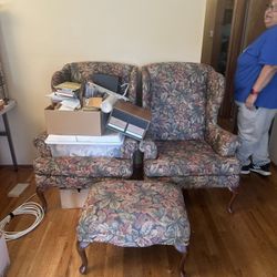 Two Wing Back Chairs With One Ottoman, Autumn Leaf Design$150Gresham, OR