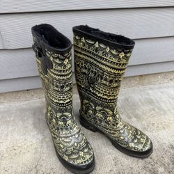 Women's Fleece-Lined Rain Boots - Tribal/Aztec Pattern - Size 9 - Warm & Waterproof$20Portland, OR
