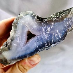 River Laced Blue Banded Agate Chalcedony Druzy Geode Quartz From India 11.5 OZ$64Vancouver, WA