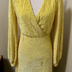 NASTY GAL Women's 4 Yellow Sequin Cocktail Dress Long Sleeve Plunge Neck AS IS$13Portland, OR