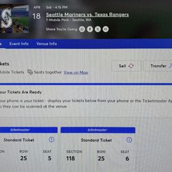 Seattle Vs Rangers Tickets $250Seattle, WA