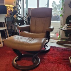 Modern Mid-century reclining Leather Chair & Foot Stool$100Shoreline, WA