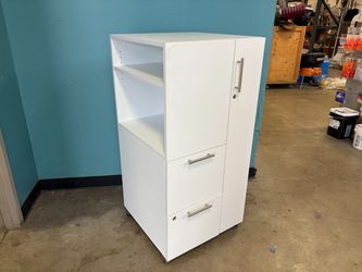 White Left Hand 2 Drawer Storage Tower with Shelving and Narrow Cabinet with Key$149Seatac, WA