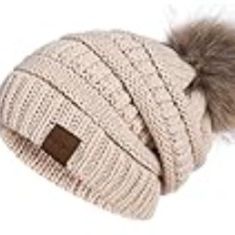Brand new winter beanie hat beige with pom pom