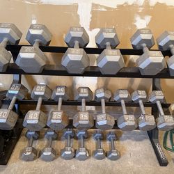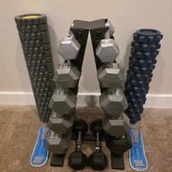 Dumbbells 25lb, 20, 15, 10, 8, 5, 2. With stand.+ Free 2 massage rollers & 2.5lb x 2 wrist/ankle weights. Excellent Condition $160Gig Harbor, WA