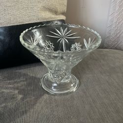 pressed glass pedestal bowl/compote with a starburst pattern and scalloped rim. $20Monroe, WA