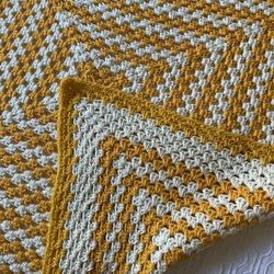 Handmade Crochet Blanket – Mustard & White (Never Used) $95Seattle, WA