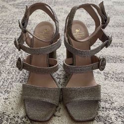 New Prezioso metallic block-heel sandals with multiple buckle straps Size 7 $125Kirkland, WA