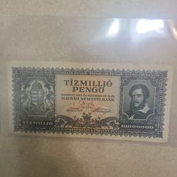1945 Hangary 10 million Pengo National Bank Note$35Lynnwood, WA