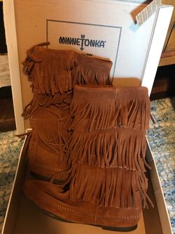 Minnetonka brown fringe boots woman NEW sz 8$45Snohomish, WA