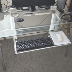 Mobile Tempered Glass Desk With Pull Out Keyboard Excellent Shape, 29” High, 39” Wide X 22” Deep Plus Keyboard $150Seattle, WA