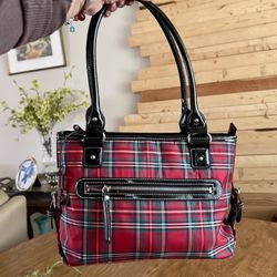 CHAPS Tartan Y2K Vintage Red Green Plaid Black trim Zipper Closure Shoulder Bag$39Covington, WA