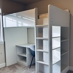 IKEA Loft bed frame, desk and storage, white, Twin$350Edgewood, WA