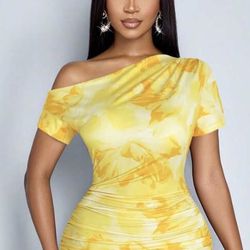 Yellow Froral One Shoulder Ruffle Mini Dress $10Seattle, WA