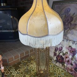 Vintage Ornate Gold Lamp With Fringe Shade$25Lynden, WA