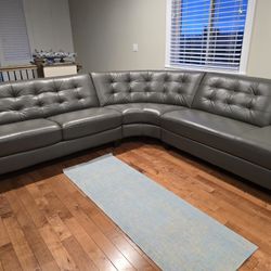 Matching Gray Leather Sofa & Loveseat Set – Plush, Wide-Arm Design, Nail Head Accents “WE DELIVER”$500Bellingham, WA