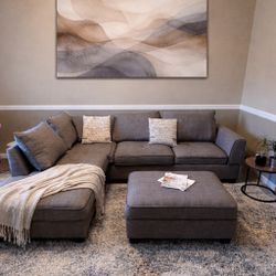 Gray linen sectional couch and ottoman$650Federal Way, WA