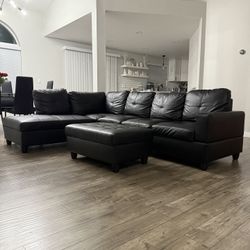 Black Leather Couch / Sectional + Ottoman$400Federal Way, WA
