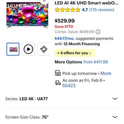 Lg Ua77 75 Inch Ai Tv$450Everett, WA