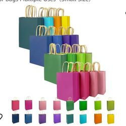 qiqee 60-Packs Paper Bags with Handles Bulk 8.26"×6"×3.15" Small Gift Bags 16 Different Senior Color Bags Multiple Uses(Small Size)
