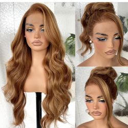 13x6 HD Glueless Lace Frontal Wigs Pre-Plucked, 200 Density Honey Blonde Sunkissed Highlights Synthetic Long Body Wave Lace Front Wig Ready to Wear, 2$45Bothell, WA