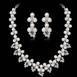 Faux Pearl Necklace Earrings Set Elegant Classic Rhinestones Floral Vine Filigree Wedding Bride $12Kent, WA