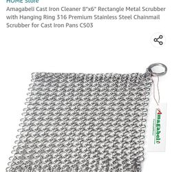 Amagabeli Cast Iron Cleaner 8"x6" Rectangle Metal Scrubber with Hanging Ring 316 Premium Stainless Steel Chainmail Scrubber for Cast Iron Pans CS03$5Kent, WA
