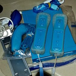 Nintendo Wii Rare COLOR MODEL ☆ :r v l 101 *( u s a) 2 X BLUE CONTROLLERS, Wii MOTION PLUS (2) Blue KNUCKLES.ALL BOOKLETS ,GUIDES Stand $220Seattle, WA