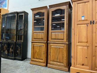 Tall Wooden Bookend Cabinets with Glass Doors and Brass Accents (Set of 2)$149Seatac, WA