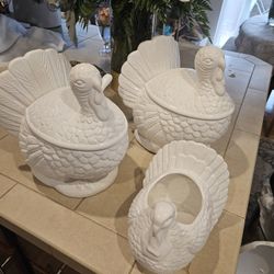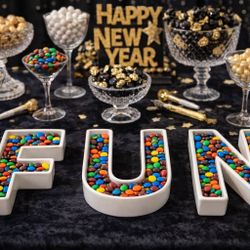 3 Sets "FUN" White Ceramic Candy Dishes, Party Celebration Serving Dishes