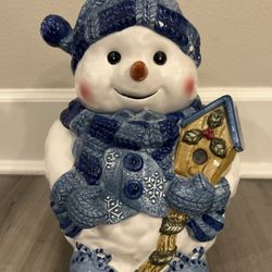 Blue & White Snowman Cookie Jar with Birdhouse – Holiday Decor $5Seattle, WA